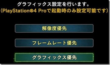 PS4 Pro、出力解像度はフルHDにして、グラフィックス優先設定でプレイしてみました。これでPS4 Proが出せる映像美としては最高のものが出るはずです。性能が足りず様々な処理を省略して解像度だけ高めた4Kより、綺麗に処理されたフルHDの方が”綺麗”ですよね。まぁ体感は違うのかも知れませんが。