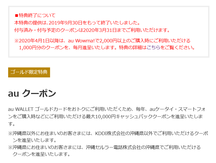 auウォレットゴールドカード、昨年までは「端末購入時に1万ポイント」というクーポンがついてたんですよね。年会費が1万円ですので、消費税無視すればそれでトントン。