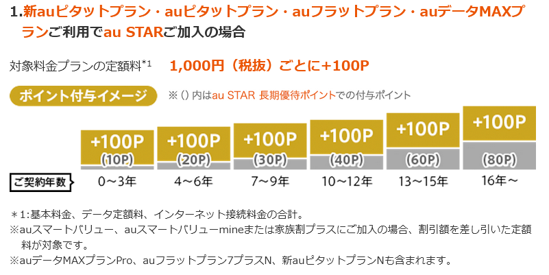 ここに長期優待ポイントが、auポイントプログラムのシルバーで契約期間0~9年は1400ptなので、まぁほぼほぼトントンですか。