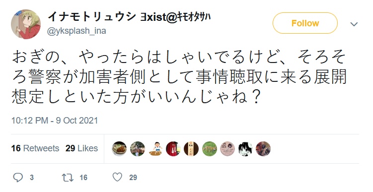 人生詰んだ限界左翼、フェミ騎士として名高いイナモトリュウシくんが面白いツイートをしていました。大田区議会議員のおぎの稔議員が、警察から加害者として事情聴取を取られる展開になるという主張です。